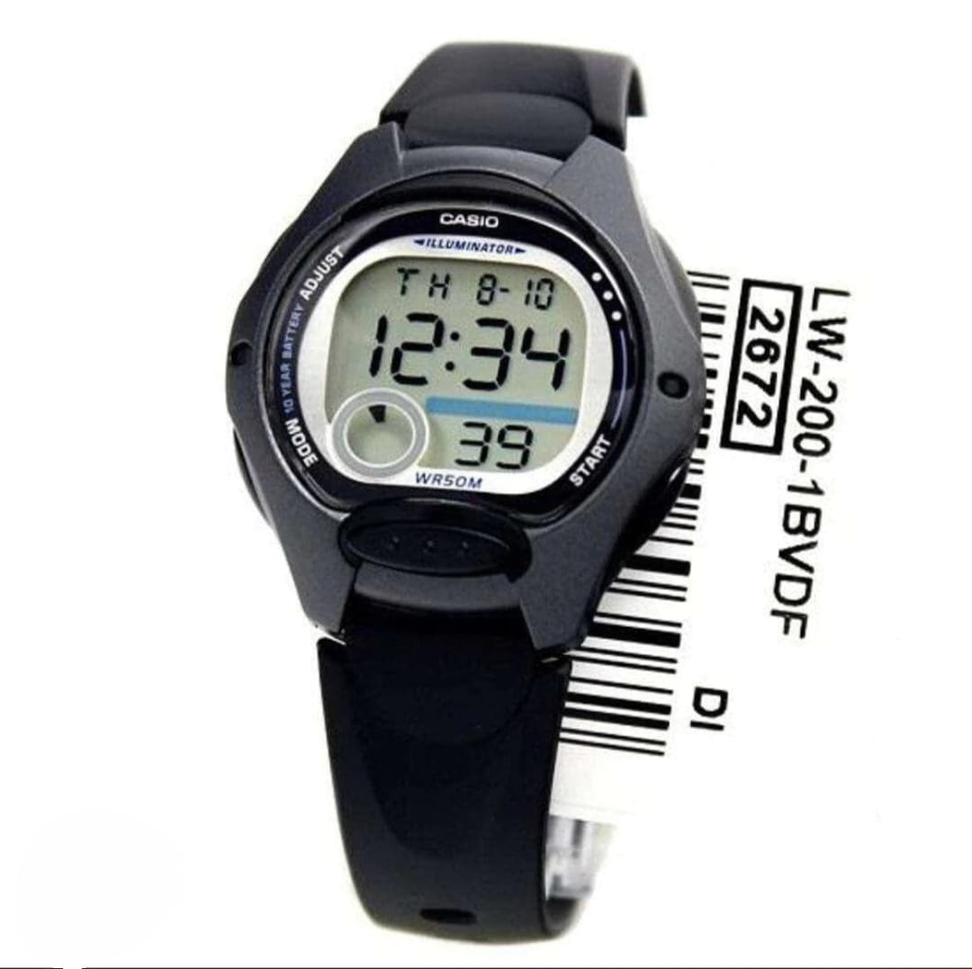 The Casio LW-200-1B is a lightweight, durable digital watch featuring 50-meter water resistance